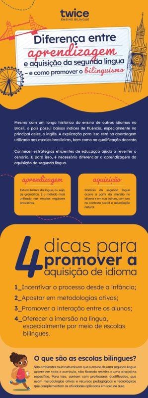 Mesmo com as políticas públicas favoráveis ao bilinguismo, ainda há muito esforço a ser feito para ampliar a parcela da população que é fluente no inglês, o idioma da globalização – número que, segundo o British Council, é de apenas 1%. Reverter esse cenário é possível, desde que se preze pela melhor maneira de desenvolver a capacidade e possibilidade de acesso ao ensino na língua inglesa. Daí a importância de saber a diferença entre aquisição e aprendizagem de um novo idioma.
