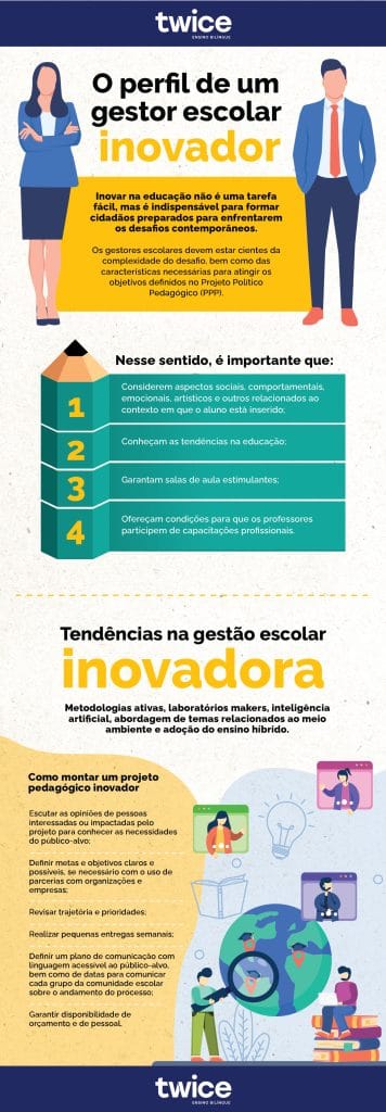 Um gestor escolar deve estar ciente da complexidade da tarefa e de que o princípio da inovação precisa estar presente em todos os ambientes da instituição, bem como previsto no PPP. A partir dessa noção, é importante considerar sociais, comportamentais, emocionais, esportivos, artísticos e outros relacionados ao contexto em que cada aluno está inserido. Só então o profissional compreenderá as realidades dos indivíduos e poderá agir com eficácia. Ao mesmo tempo, a estratégia demanda atualização sobre as tendências no ensino, entre elas o bilinguismo.